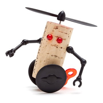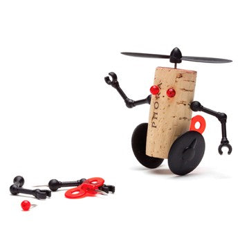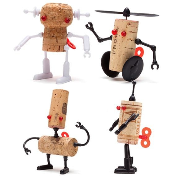 The little box includes the body parts for one corker which together with a cork and a little crafting turns into funny robot figures. The appearance of the figure will be a little different depending on the selected cork form, whether it is wine cork or champagne cork. (Cork is not included.)