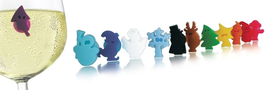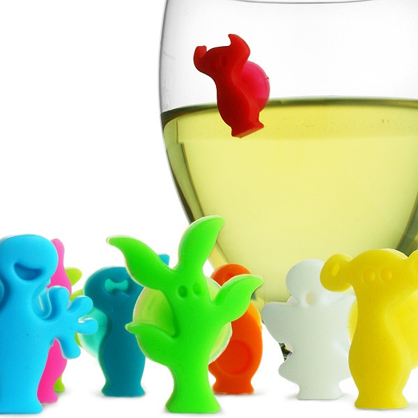 - Set of 12 funny characters that you attach to your guests wine glasses so they do not mix them.