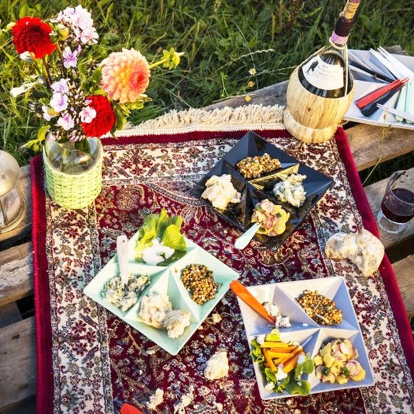 - Four irregularly shaped compartments for nuts, olives, snacks or small tapas.