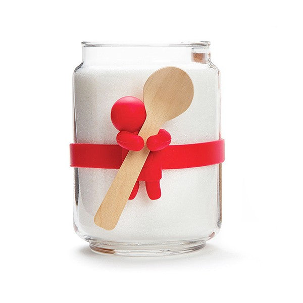 Mantenga la cuchara a mano con esta pequeña y adorable ayudante, el soporte de cucharas, June Spoone. Ella es perfecta para botes y tarros de café, azúcar, granola y más. El soporte de cucharas June Spoone se sujeta fácilmente alrededor de un tarro o bote con una banda elástica y la pequeña June sostiene la cuchara con sus brazos para que esté siempre a mano.