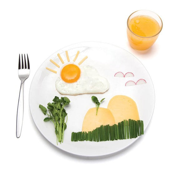 The Sunny Side egg mold from Monkey Business is a silicone, food grade mold that will make your or a loved ones breakfast a lot brighter. Just crack the egg and put the yolk in the circle and the egg white in the cloud. Fry as usual and a few minutes later you have an adorable little creation ready for the breakfast table. Once you have the sun in place there is no limit for the landscapes that can be created using the other components of the meal.