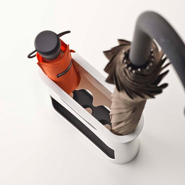 The Oval umbrella stand has room for four umbrellas and cleverly enough it has an internal platform for supporting compact umbrellas as well. This way the small umbrellas does not get lost at the bottom of the stand.