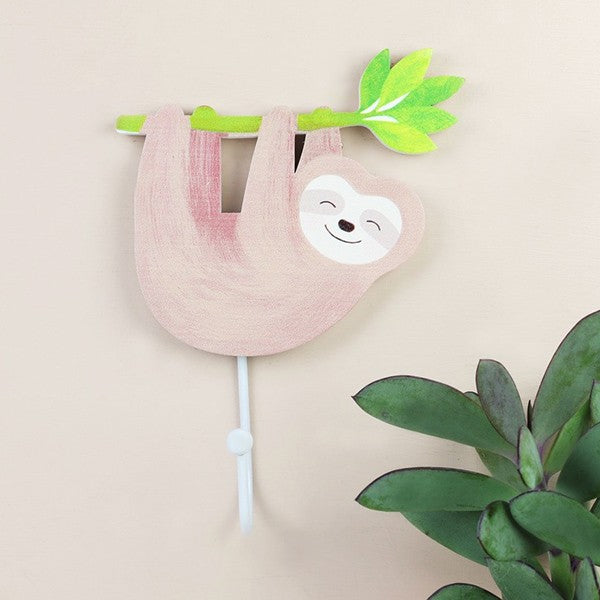 Original wall hook that will be a a nice detail to decorate the kids room, nursery or hallway with. The cute sloth has a lovely smiley face with closed eyes and a happy mouth. Perfect for hanging just about anything and with a knob on the end of the hook to ensure there are no pointy edges. Simple yet adorable and super easy to put up.