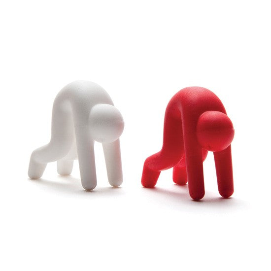 El paquete contiene dos figuritas de silicona de uso alimentario, una roja y una blanca. Son casi indestructibles; aguantan tanto las altas temperaturas de la comida como la limpieza en el lavavajillas, en casi de que se necesite.