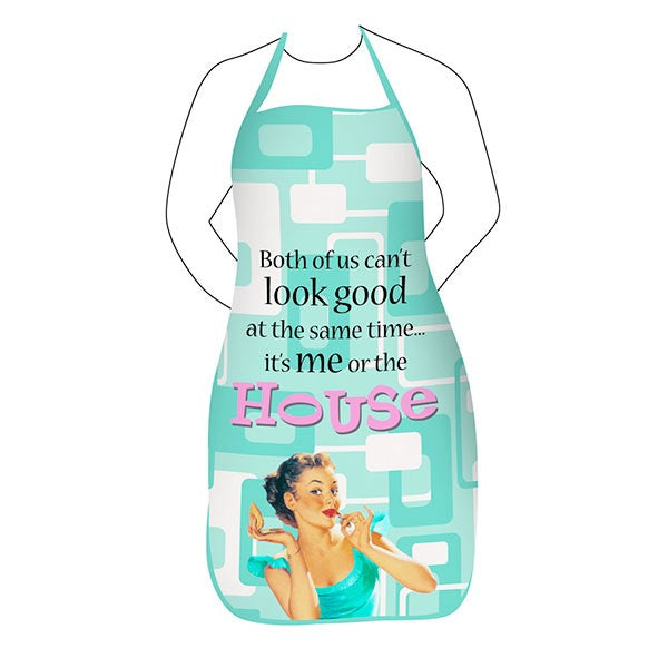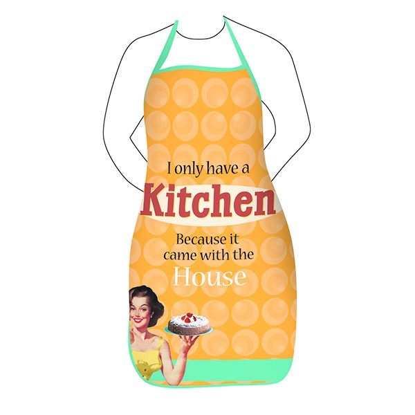 Los mensajes de estos originales delantales son la mezcla ideal del humor de dos épocas distintas. Son mensajes divertidos y algo sarcásticos que gustarán a cualquier mujer con sentido del humor, tanto si es una orgullosa ama de casa que se pasa dos días preparando el plato ideal como si es una ajetreada mujer de negocios que usa el delantal para no manchar su vestido de Gucci al servir la comida para llevar que va a tomar.