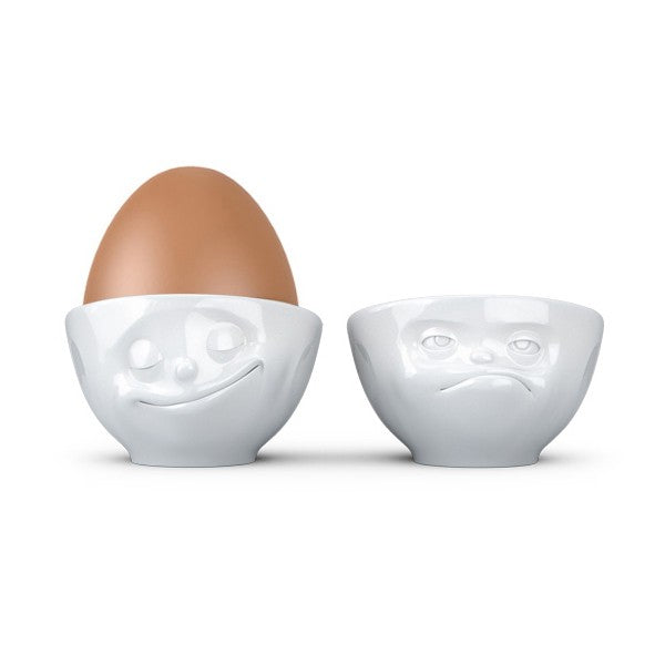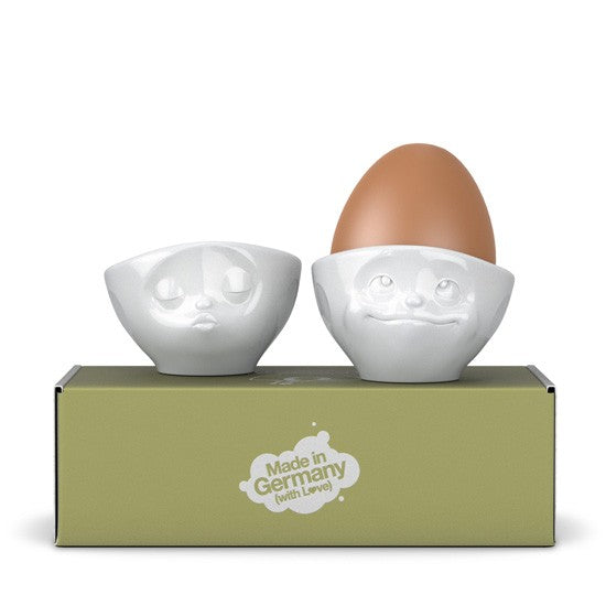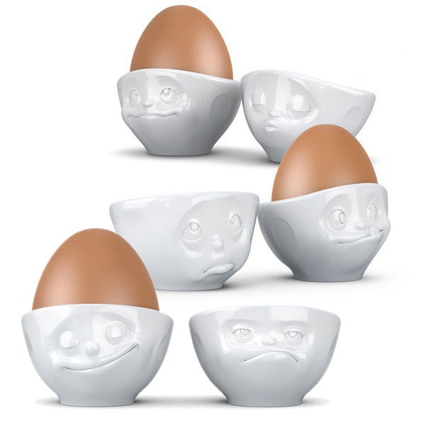 La serie Tassen está diseñada por FiftyEight Products y fabricada en Alemania, con la mayor garantía de calidad de producción. El diseño de las caras es una idea totalmente innovadora que tiene su origen en el diseño avanzado en 3D que luego se transforma en objetos físicos. Puedes servir los huevos en la huevera que mejor represente tu humor matinal. ¿Eres un soñador o un besucón? ¿O tal vez sueñas con que te besen?