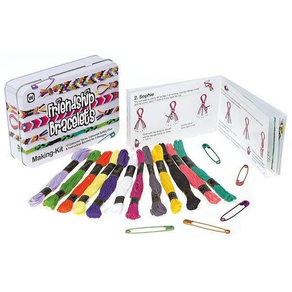 Este éxito de ventas permite crear uno de los símbolos tradicionales del amor y la amistad. Va acompañado de un libreto de instrucciones a todo color con cinco diseños de pulseras de la amistad distintos. La caja contiene 96 metros de hilos de 12 vivos colores, por lo que hay material suficiente para mantener entretenidos a los niños durante un buen rato.