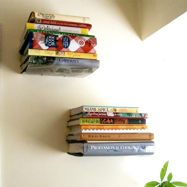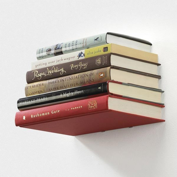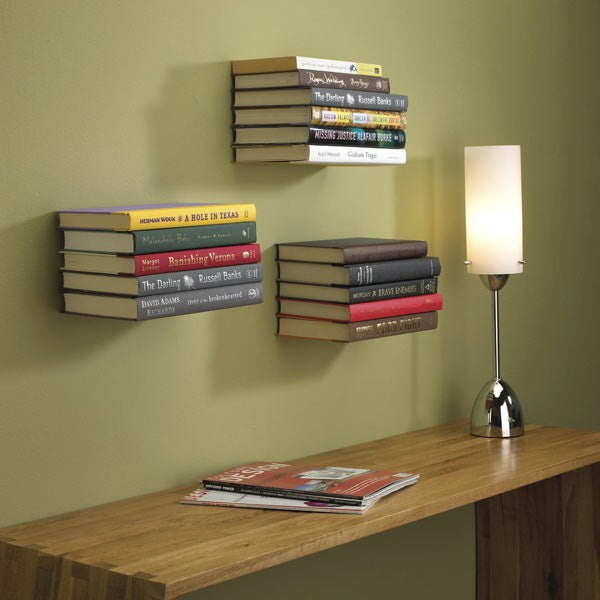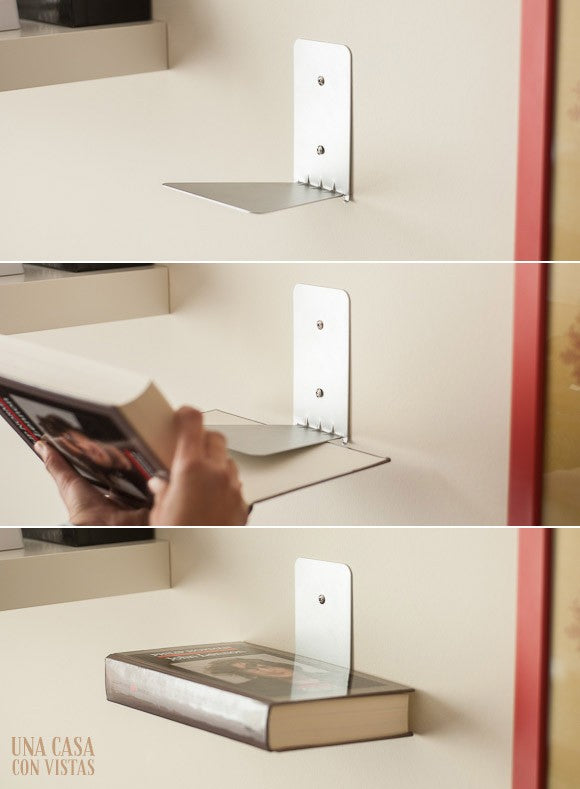 La estantería invisible desaparece completamente cuando se cubre con libros, dando la sensación de los libros están flotando sobre la pared.
