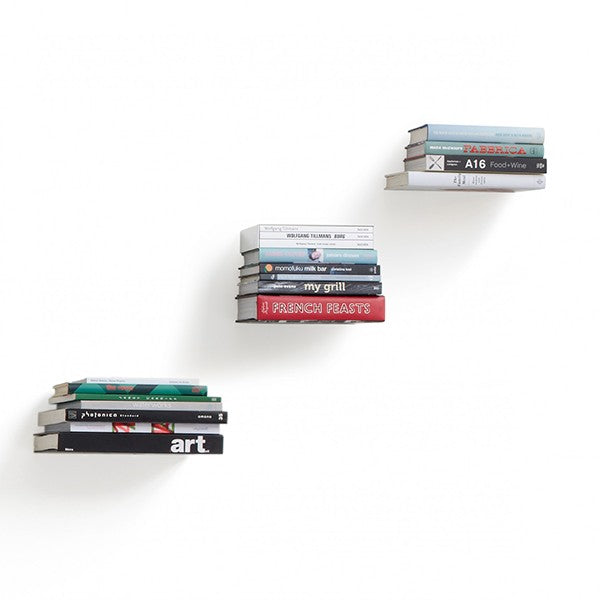Esta estantería queda oculta por los libros que sostiene, dando la sensación de ser una pila de libros flotando soblre la pared. La estantería flotante Conceal de Umbra se integra a la perfección con tus libros y se convierte en una estantería invisible. Es fácil de montar en la pared y darle a tu habitación un aspecto elegante y minimalista. La belleza de esta estantería invisible es que juega con los estantes de libros tradicionales y "normales" pero desaparece completamente cuando se cubre con libros.