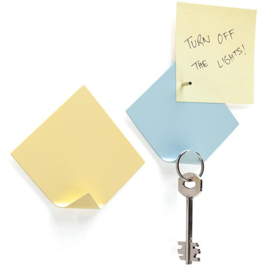 Original gancho para llaves en forma de nota adhesiva. También se le pueden pegar notas con imanes.