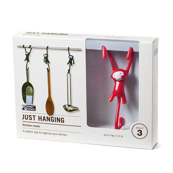 - Graciosos ganchos de cocina en forma de monitos colgantes.
