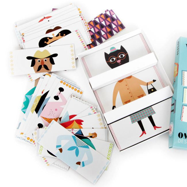 El juego Mix & Match de Omm design consiste en tres partes que hay que encontrar y combinar para crear cada personaje. Está hecho en cartón extra-fuerte.