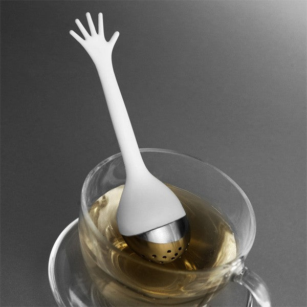 - Original infusor de té en forma de mano que flota en el agua caliente.