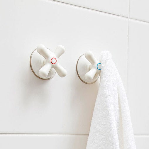 Al rescate vienen estos colgadores de ventosa en forma de llave de ducha con los que podrás extraer el aire de la ventosa con solo girar la llave. De este modo, se crea un vacío en la parte posterior y el colgador queda bien sujeto y firme contra la pared.