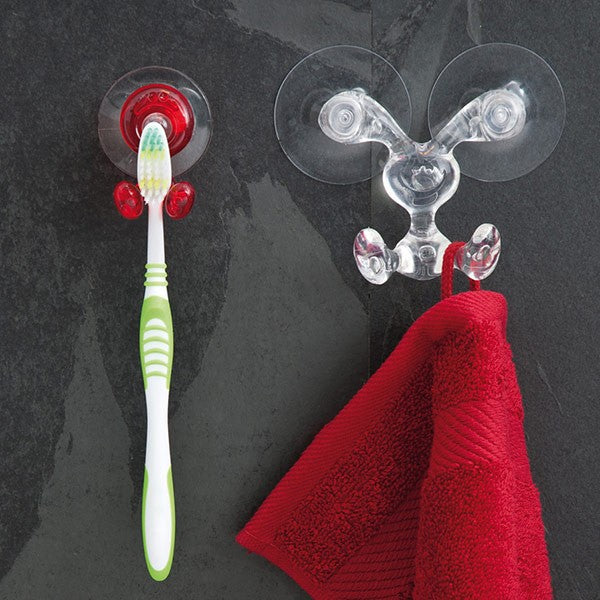 Este encantador conejito colgador de la casa alemana de diseño Koziol se adhiere fácilmente a cualquier superficie plana como azulejos, espejos, el frigorífico, etc. Una vez en su lugar, será feliz sujetando tus toallas, paños de cocina, chupetes, o cualquier otra cosa que necesite un lugar de donde colgar.