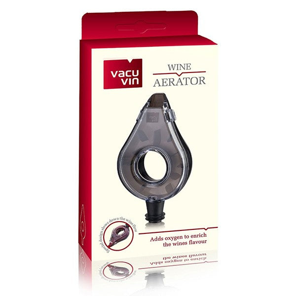 El aireador Vacu Vin permite oxigenar el vino en el mismo momento de servirlo en la copa. El diseño del producto ralentiza el flujo del vino hacia la copa, permitiendo que coja oxígeno extra, enriqueciendo así su sabor.
